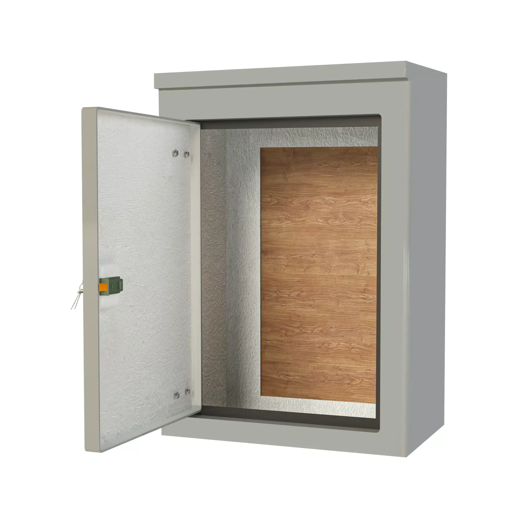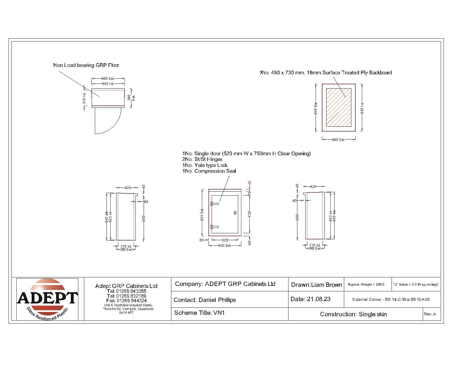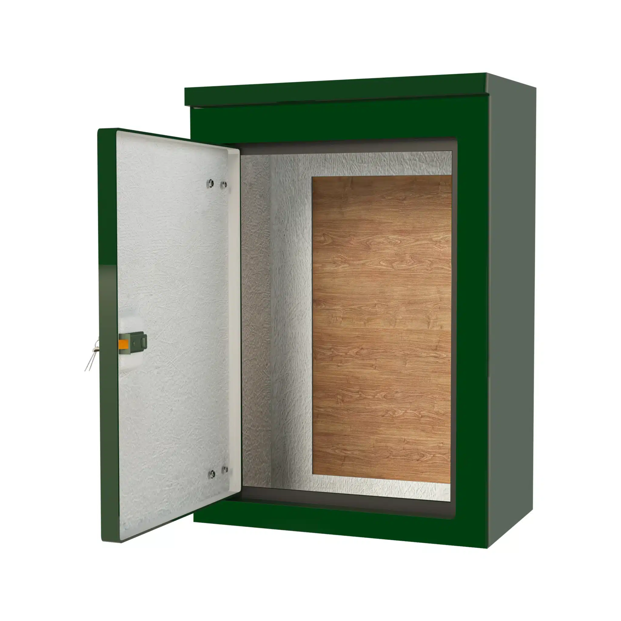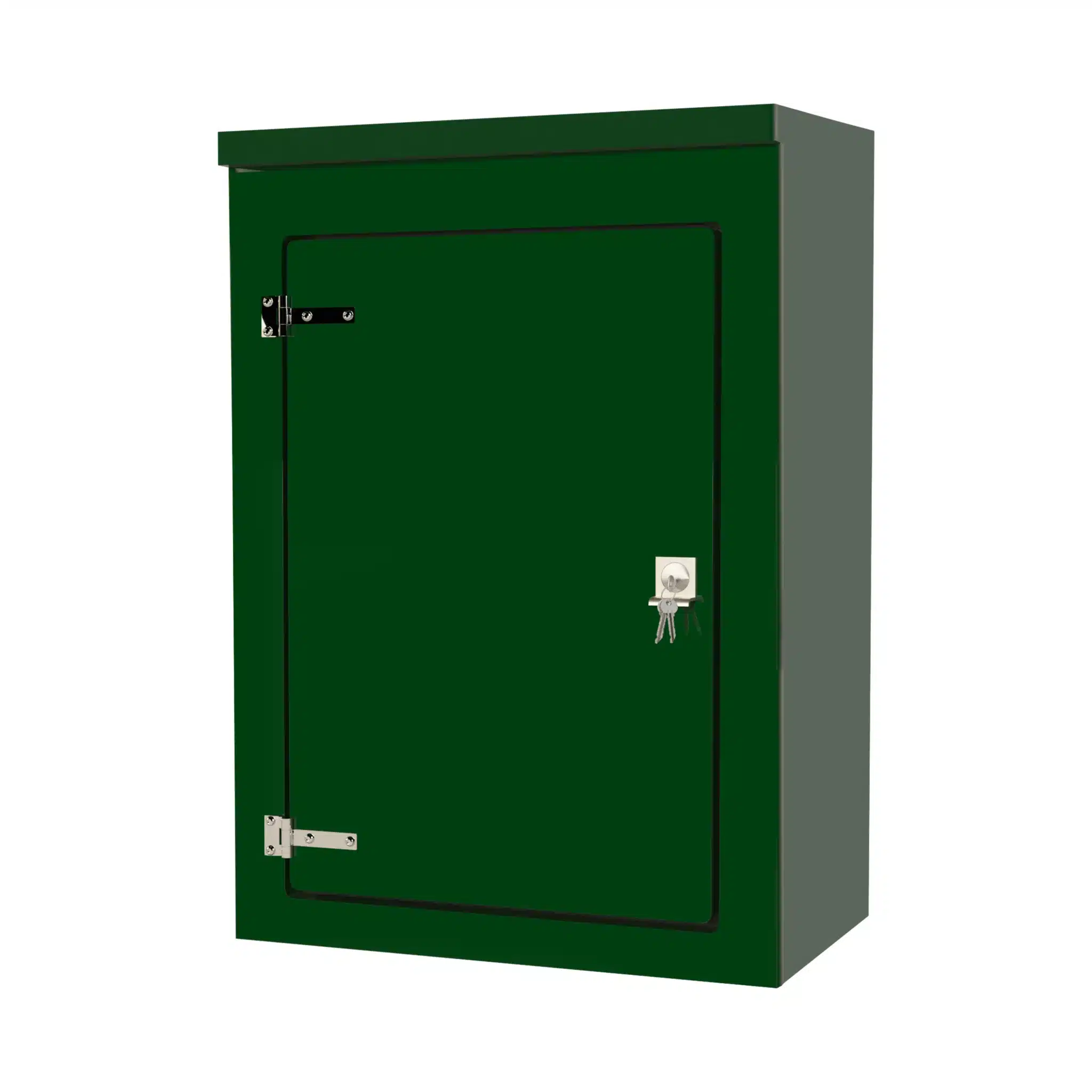 Our VN1 GRP Cabinet is available in Green (BS 14-C-39) and Grey (BS 10-A-05) as standard and is finished internally with a fire-retardant resin, it has a Single Skin Construction and comes complete with stainless steel hinges, security fixings, a cylinder nightlatch lock as well as a surface treated ply backboard, it has a closed base and is suitable for both floor or wall mounting. Delivery is normally made by National Carrier. Stock levels fluctuate daily so please contact us for a lead time if you require urgently.
