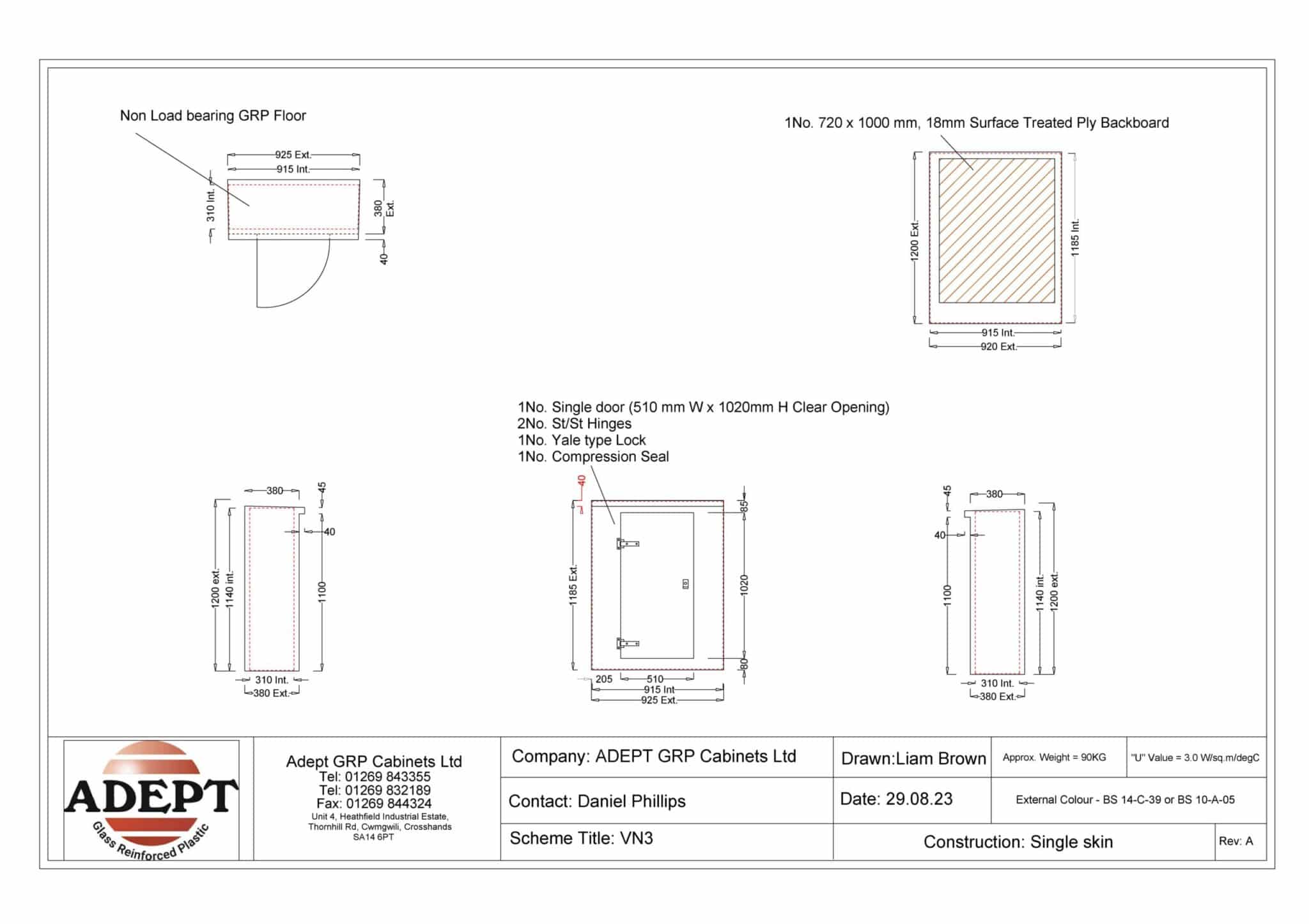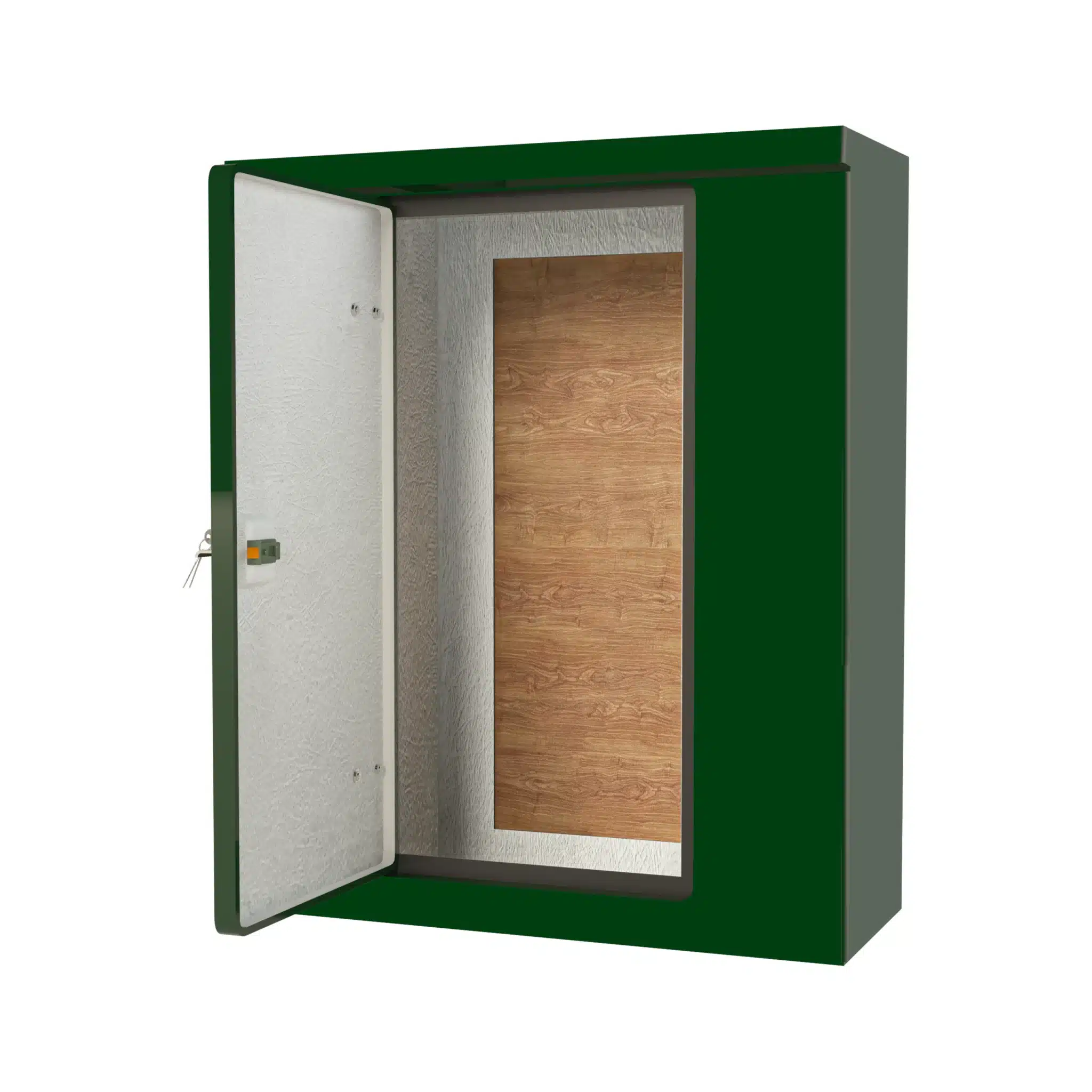 Our VN3 GRP Cabinet is available in Green (BS 14-C-39) and Grey (BS 10-A-05) as standard and is finished internally with a fire-retardant resin, it has a Single Skin Construction and comes complete with stainless steel hinges, security fixings, a cylinder nightlatch lock as well as a surface treated ply backboard. Delivery is normally made by National Carrier. Stock levels fluctuate daily so please contact us for a lead time if you require urgently.