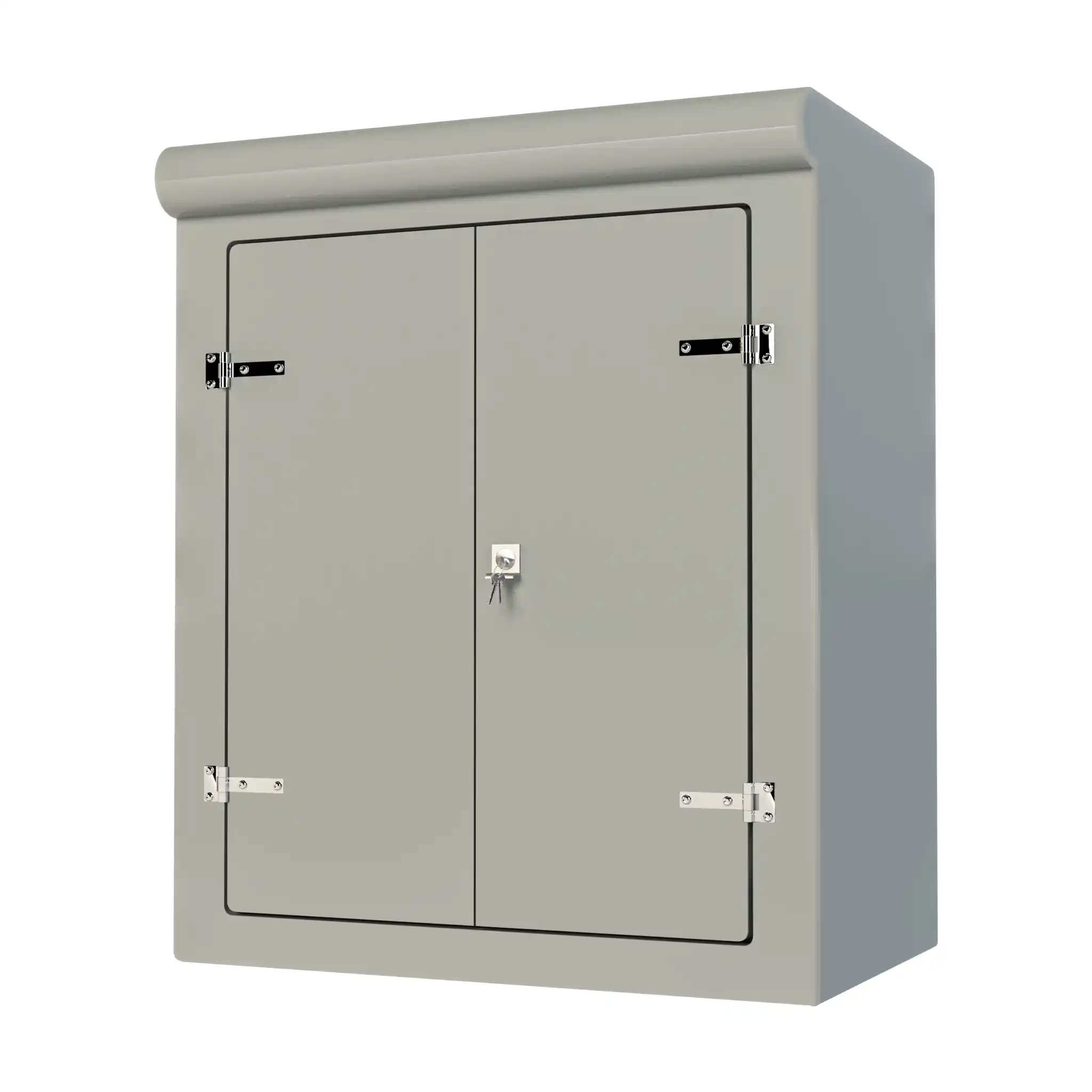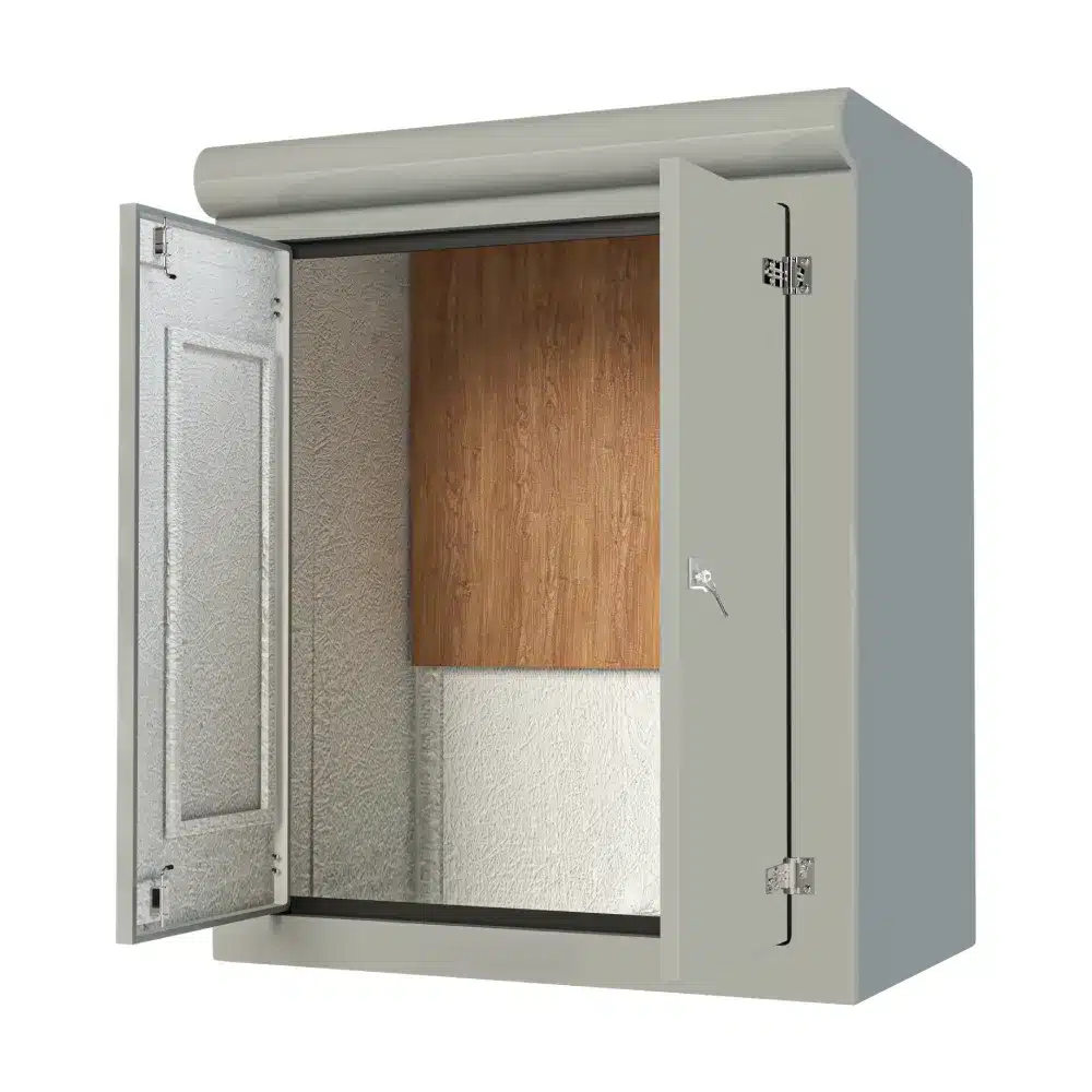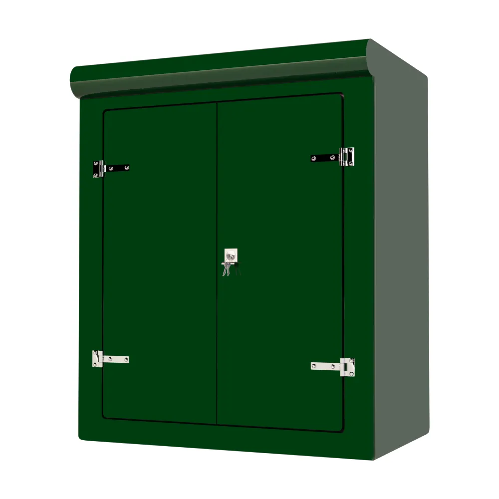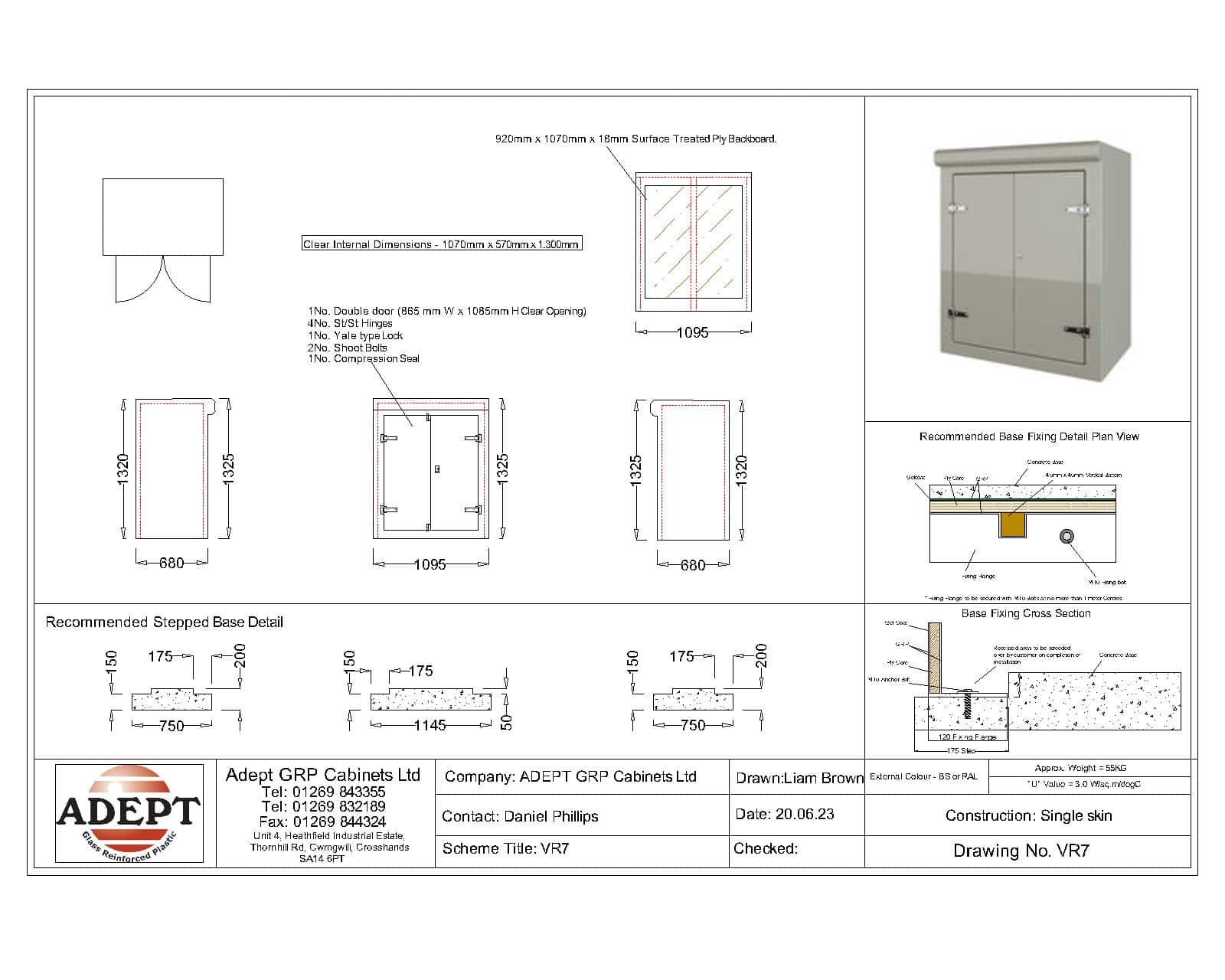 Our VR7 GRP Cabinet is available in Green (BS 14-C-39) and Grey (BS 10-A-05) as standard and is finished internally with a fire-retardant resin, it has a Single Skin Construction and comes complete with stainless steel hinges, security fixings, a cylinder nightlatch lock as well as a surface treated ply backboard, it has an open base c/w an internal fixing down flange for floor mounting. Delivery is normally made by National Carrier. Stock levels fluctuate daily so please contact us for a lead time if you require urgently.