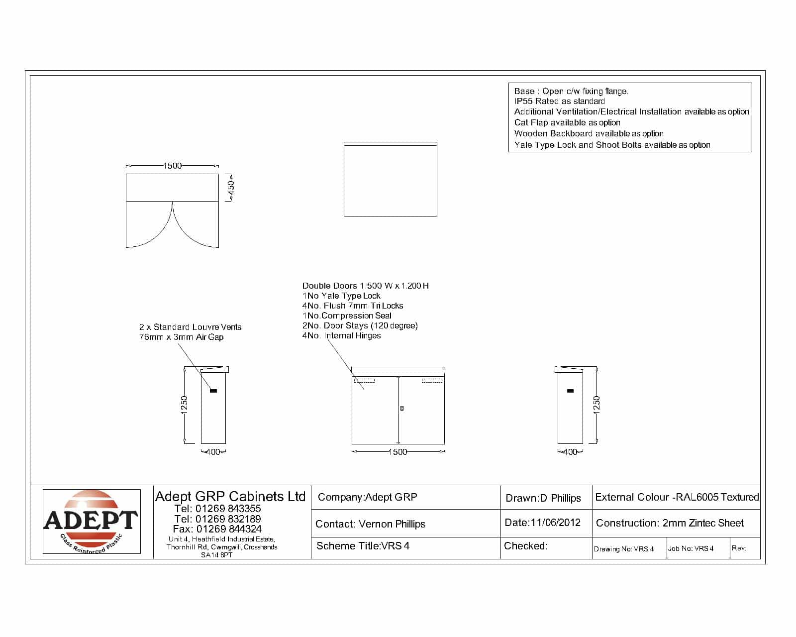 The VRS4 steel kiosk is manufactured from 2mm Zinetec sheet steel to BS EN 10152:2017 ZE 25/25. Our VRS steel kiosks provide excellent weather protection and sound earth continuity. The kiosks are press-framed, welded to give a rigid construction and manufactured to IP55 with certification to BS EN60529:1992 and A2:2023 (Category 2). The standard finish is a high quality texture in dark green (RAL 6005). All kiosks are fitted with lifting brackets, 14mm floor fixings, hold open door stays, night-latch lock, 7mm triangular key locks, a surface treated ply backboard and earthing points as standard. Delivery is normally made by National Carrier. Usual lead time is approximately 2-4 weeks from order, but if you require urgently please contact us and we will endeavour to assist.